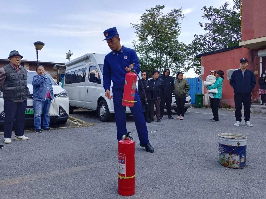 为持续提升居民消防安全意识,社区联合各物业单位在现场开设消防安全培训,组织物业安保人员、社工及居民共同参与,以通俗易懂的语言重点讲解电路老化、易燃品堆积等常见火灾隐患的排查方法,以及“小火会用灭火器、大火会逃生”的核心要点,现场演示灭火器“提、拔、握、压”四步操作法及消火栓使用流程,为社区居民和工作人员筑起安全的防线。