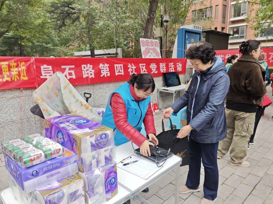 活动当天,居民们早早带着整理好的旧衣旧鞋、废旧自行车和旧家电等陆续来到社区广场。活动现场设有旧物置换区和知识宣传区。社工们根据居民旧物类别,引导其前往相应的位置,有的负责登记和送出礼品,有的帮忙清点和维持秩序,有的协助搬运和称重,确保活动有条不紊地进行,为居民搭建“交易+交换”的平台,方便大家根据需求“双向匹配”。